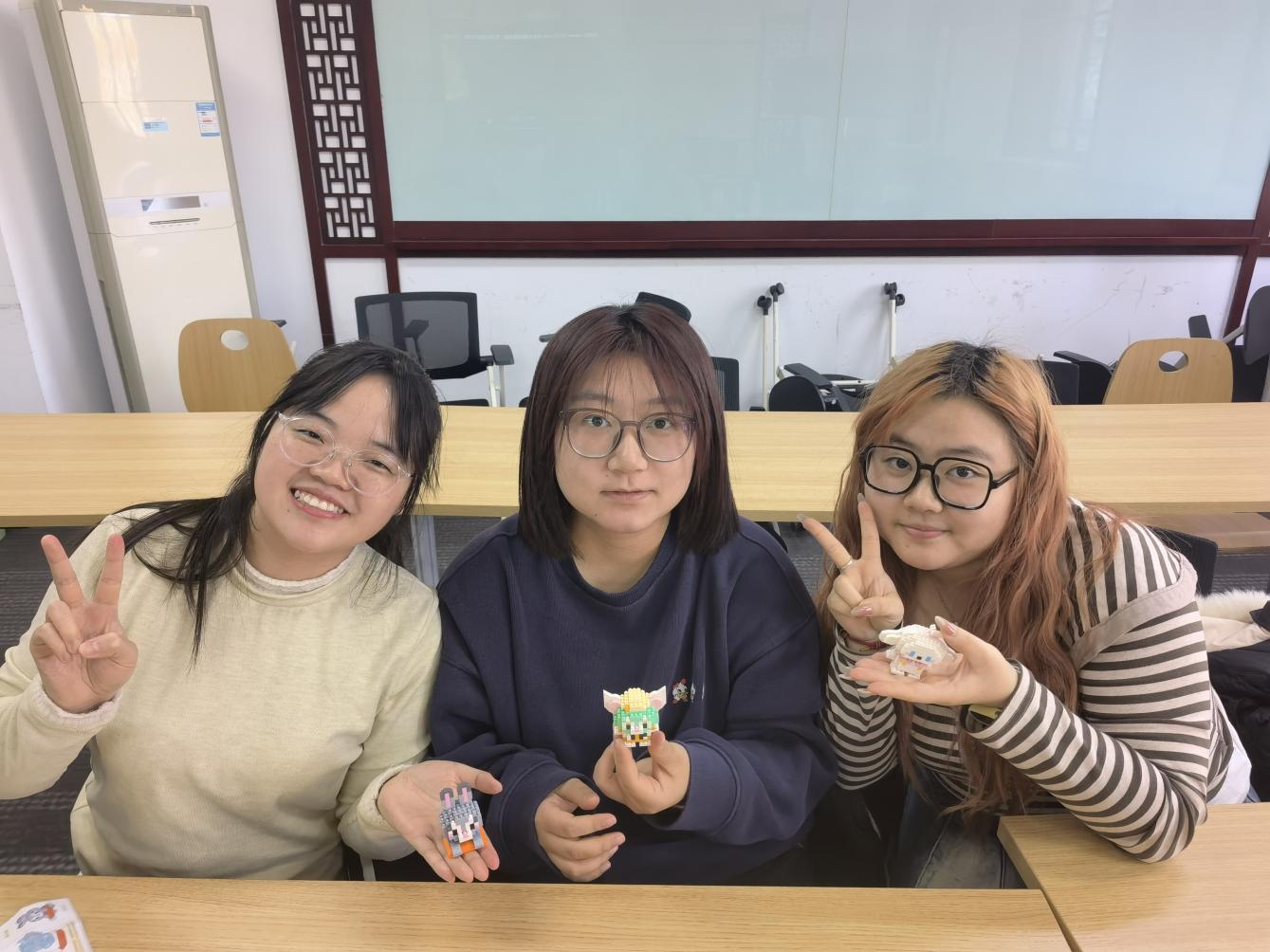 活动中,同学们在党员骨干的指导下,用积木拼接自己喜爱的卡通人物。大家时而低声交流,时而默契拼接,在色彩斑斓的积木块中开启创意之旅,现场播放的减压电影为活动营造了轻松愉快的氛围。同时,教室边近百本心理健康类图书,捏捏乐、涂色本等解压玩具同步供同学们使用,多维度为同学们提供心理舒缓方式。“拼积木时能完全专注当下,完成后特别有成就感,在潜移默化中减轻了压力。”参与活动的同学分享道。