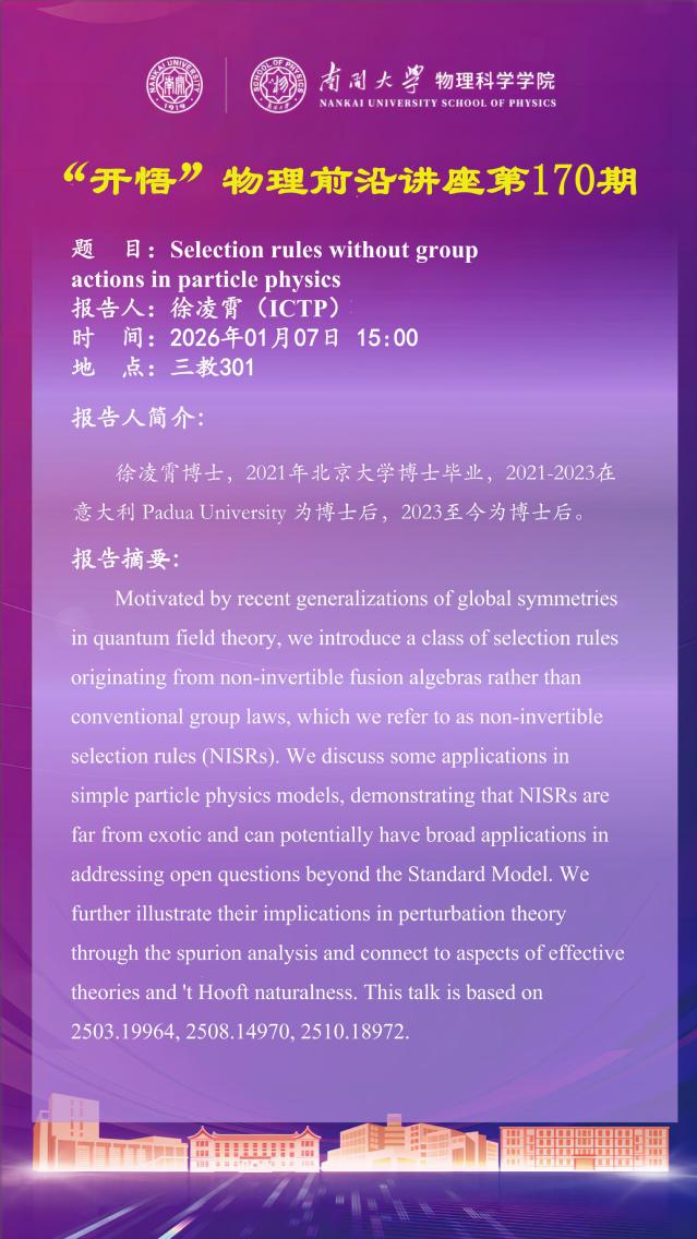 【“开悟” 物理前沿讲座 (第170期)】Selection rules without group actions in particle physics