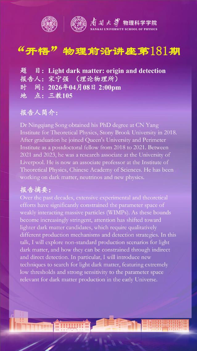 【“开悟” 物理前沿讲座 (第181期)】Light dark matter: origin and detection