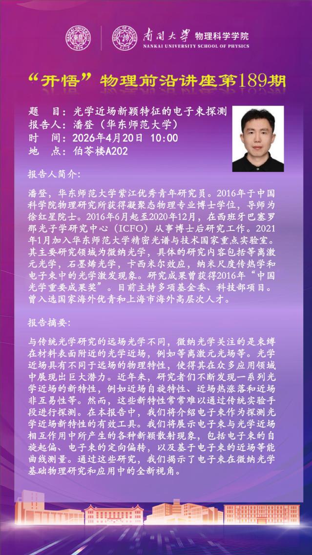【“开悟” 物理学术讲座 (第189期)】光学近场新颖特征根的电子束探测